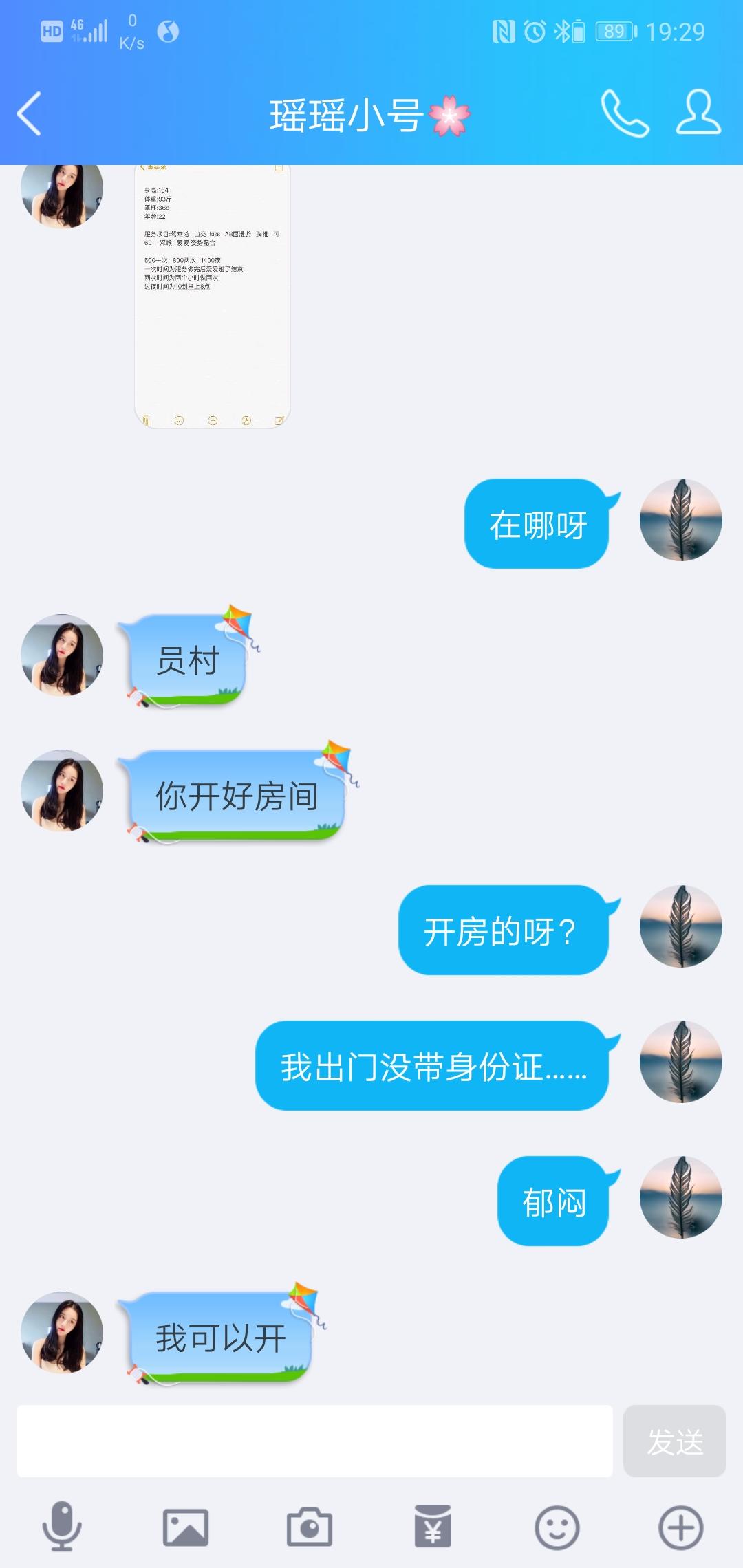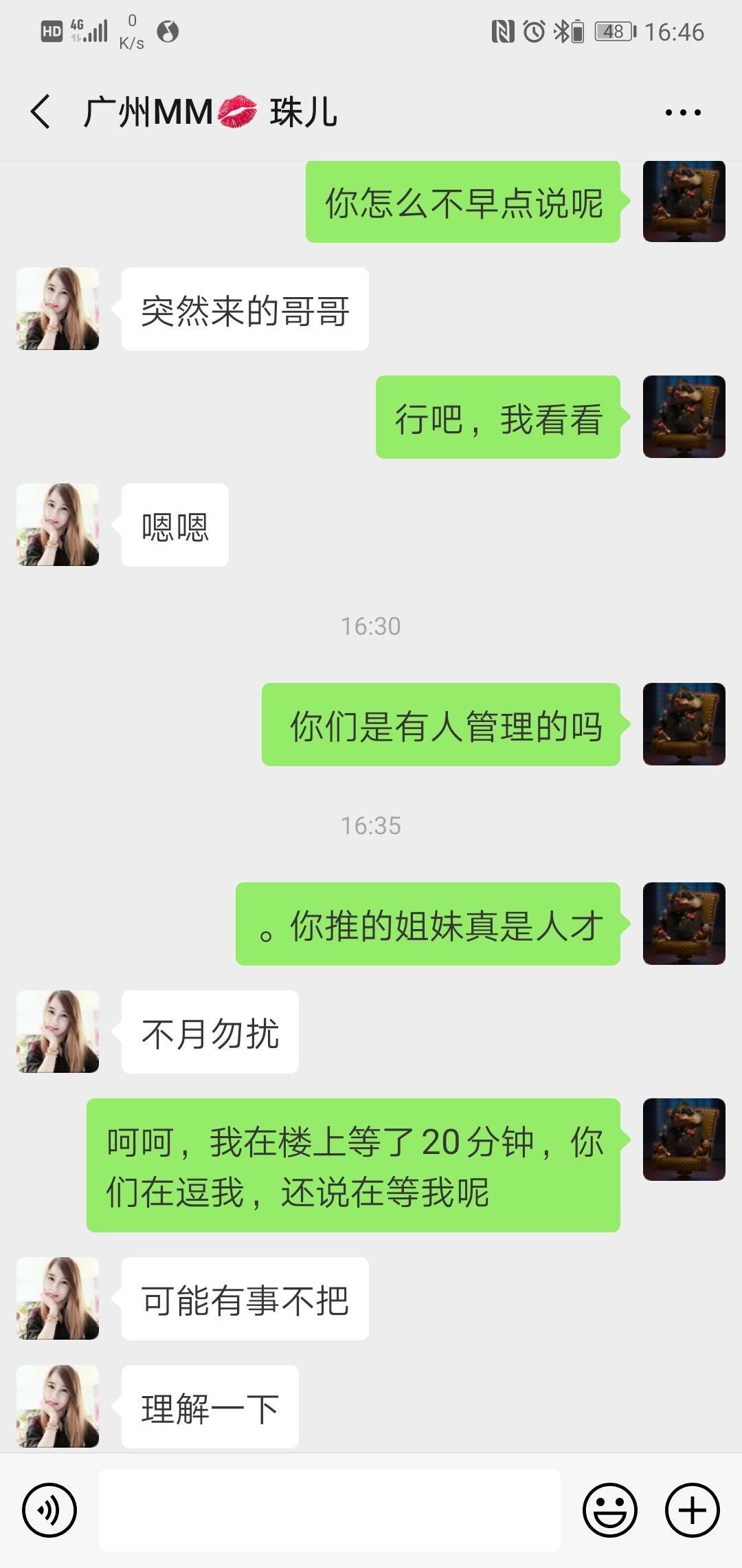 【寻欢时间】:2019年3月9-10日 【寻欢地点】:广州 【信息来源】:论坛、亲身体验 【服务项目】:口活,爱爱 【妹妹数量】:4 【环境设备】: 【营业时间】:12点到24点 【价格一览】:500p 【安全评估】:100 【服务星级】:0 【重点推荐】:巨坑 【联系方式】:[unfree]q1077641825[/unfree] 【寻欢细节】:周末两天闲来无事,饱暖思淫欲,就想着约一约。先是找了员村的瑶瑶,我到了之后联系不上,过了一小时才说跟闺蜜吃饭忘了,当时我刚在珠江新城吃完饭,就回去约了,结果到了楼下说要先给房费才下来接,没见到人,声音也未闻,谈不拢走了。 第二天,不爽,看了论坛那个海珠可可,约,约定时间后忽然说例假,推了个姐妹。过了几分钟,微信换头像给名发圈说到广州开班。那个姐妹在我上了楼后联系不上,晾了我20分钟,走人。严重怀疑鸡头号,ly有兴趣可以去验下。 憋得一身火跃上了珠江新城李雯,看照片很不错,在双城国际公寓,挺高级但隔音贼差。按她说法跟着别人溜上去,入门顿感失望,课表写着22,绝壁超过26以上,前灯巨黑,皮肤很差。化妆加美颜能达到照片那样吧。 给了钱,500p,40分钟,洗澡,对的,自己洗,洗完她才进去冲一下,然后按了会腿,做了下口活,就拿套上位了。敷衍服务,做的时候装尸,性致全无,草草完事走人。她还有不冲厕所的恶习,恶心!!! 两天过的实在太糟糕了,难受,哪位老哥有验证过的好资源分享下,有群拉一下,带带新狼,谢谢 【验证截图】: