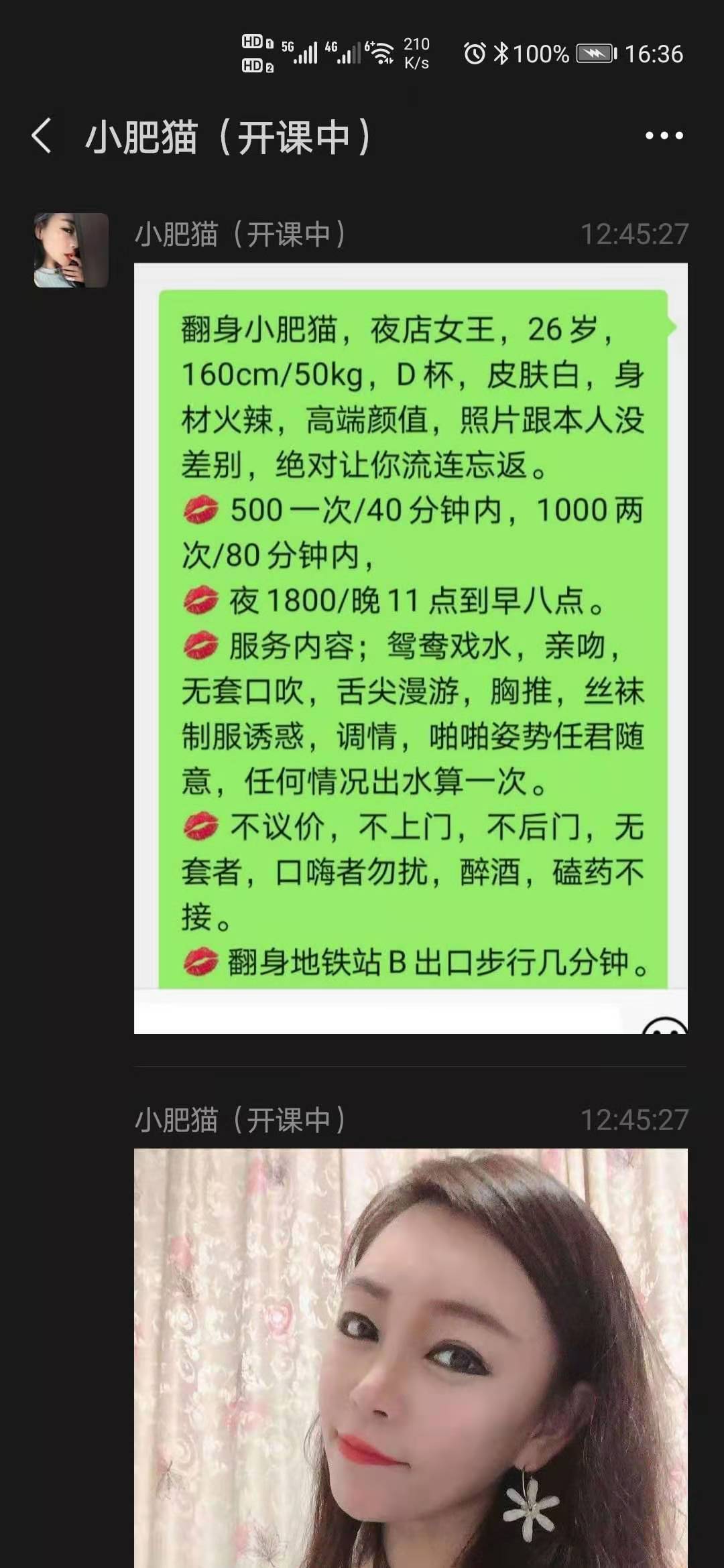 [xinxitop]提示信息[/xinxitop] 【寻欢时间】:2020年11月06日 【寻欢地点】:深圳宝安翻身 【信息来源】:狼友推荐、论坛、亲身体验 【服务项目】:鸳鸯浴,漫游,口活,爱爱、 【妹妹数量】:1 【环境设备】:良好 【营业时间】:能约上就可以 【价格一览】:500一次 【安全评估】:90 【服务星级】:★★★★(最高5星) 【联系方式】: 为了鼓励会员积极回复验证,只要原帖没聊天截图的,参与验证回复聊天截图都奖励100金币。 【寻欢细节】:下了地铁需要步行10分钟左右才能到。在一个公寓里,人长的还不错,可惜不给我69。奶子蛮大一个,是真奶,要是服务多点就好了,人不是话唠,从进门到出门都没有说几句话,500块是觉得贵了,300就超值,身材颜值还算可以,服务太少是缺点。 【附带照片】: