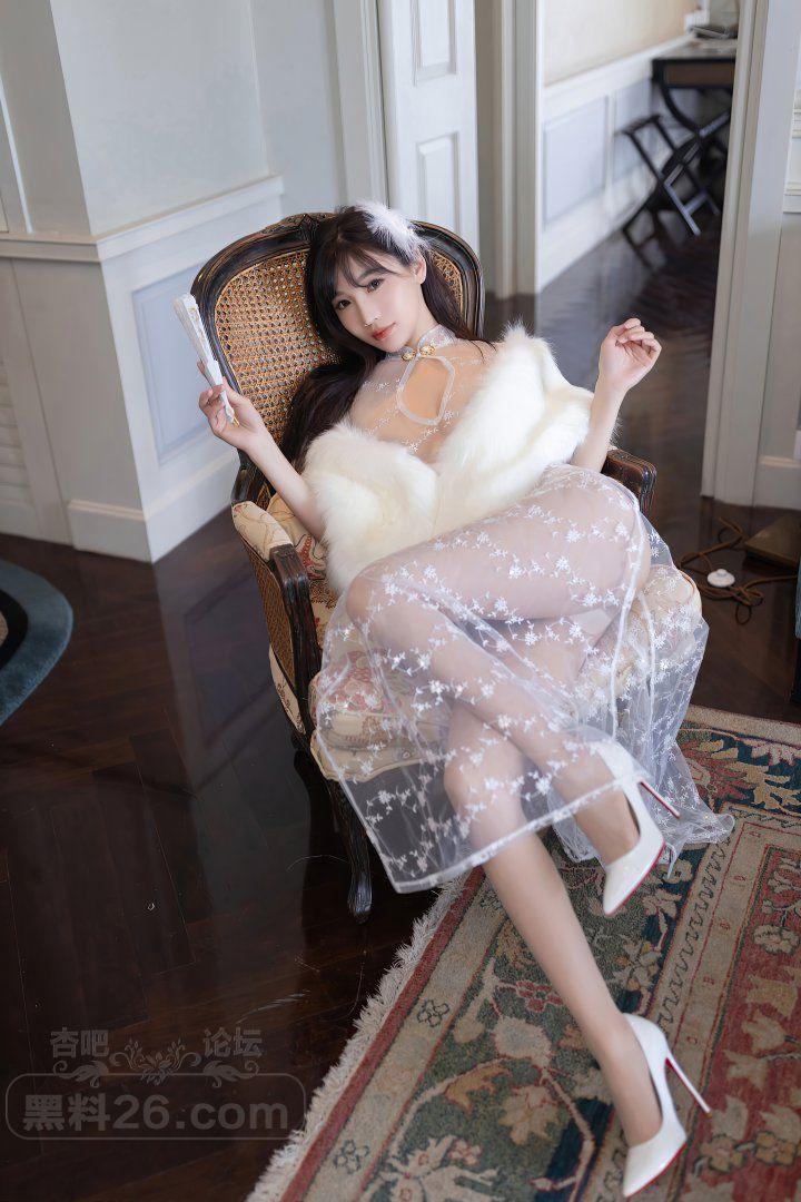 富家小姐陆萱萱白色貂绒披风薄纱开叉裙肉丝美腿销魂【20P】