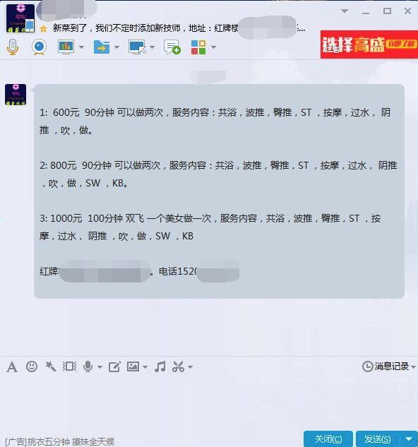 【寻欢时间】:2016.8.3 【寻欢地点】:成都红牌楼 【信息来源】:论坛 【妹妹数量】:很多 【环境设备】:酒店式公寓 【营业时间】:9-2点 【价格一览】:600PP 1000sf 【安全评估】:95不去最安全 【服务星级】:★★★★★ 【重点推荐】:SF 【寻欢细节】:指挥到地方由于第一次去那个会所又是饭点经理只安排了两个服务最好的海选不得不说那服务真的非常不错JS温柔有亲和力一点也不机车 非常不错的一次体验。可惜的是那姐姐长得虽然不错但是不是我喜欢的那种类型。后来服务完了下楼的时候在电梯里看到几个妹子也是他们那里的比较符合我口味.过几天准备还去。 【总体评价】:90 【联系方式】: 【附带照片】:马丹上次的帖子图片不知道为什么没了。希望这次不要不见了啊(妹子不是一个人)